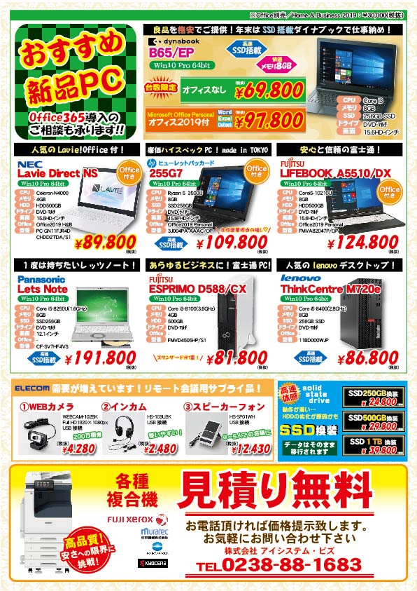 2頁◆新品PC Dynabookのi3ノートSSD搭載を特価でご提供!リモート会議用カメラやインカムもご紹介。