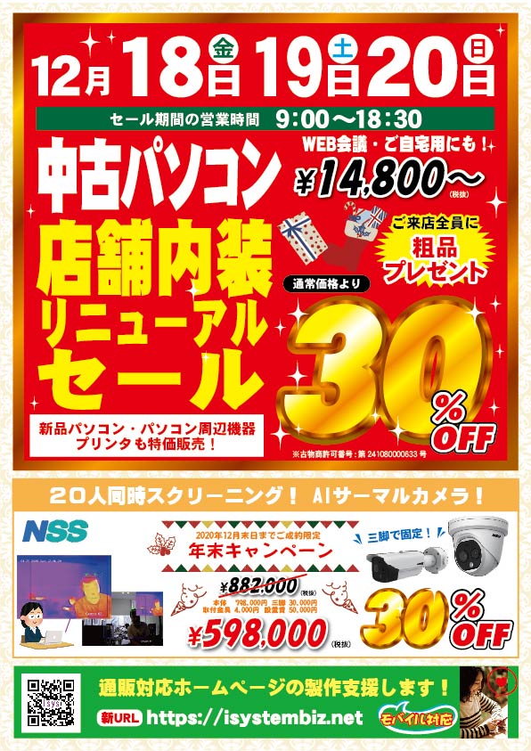 店内内装を抗ウイルス、抗菌仕様に大幅改装!中古PC30%OFFやります!